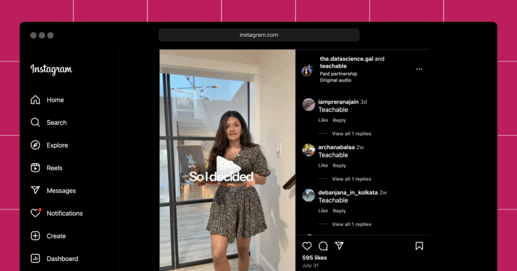 “I typically encourage creators to put [links] in the comments. Tools like Manychat are a great hack for the link problem, as well,” Ito said.
